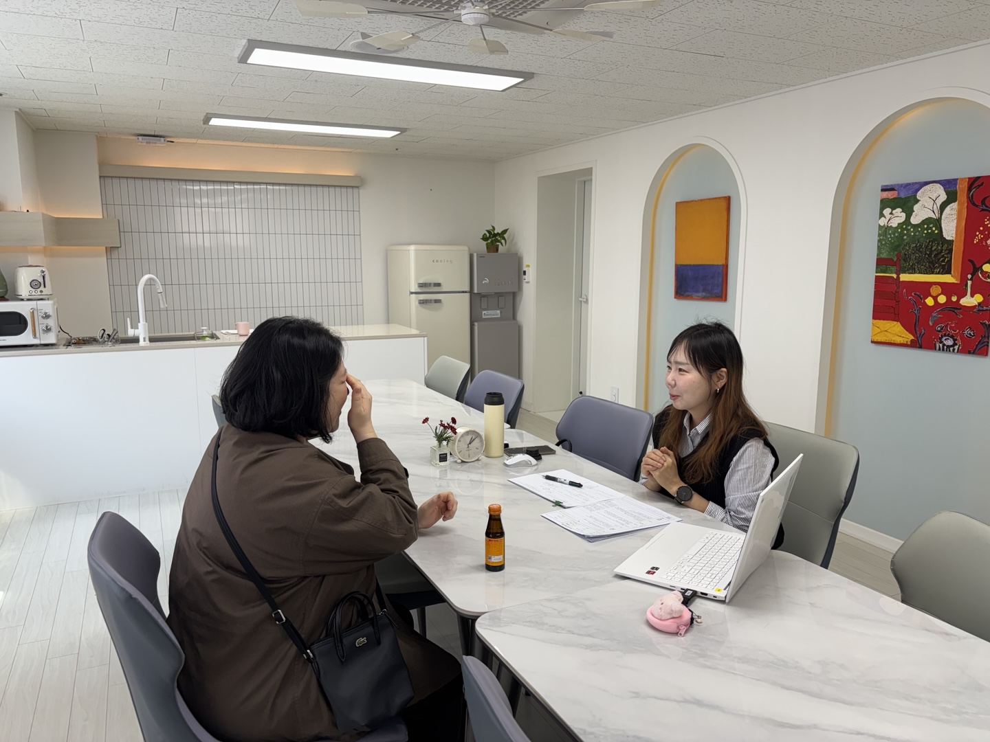 4월 1일(화)~4월 4일(금), 4일 동안 가정과 유치원 간 연계 교육의 일환으로 학부모와 교사가 유아에 대한 정보를 공유하고 함께 유아에 필요한 지원과 교육방법을 탐색하고자 1학기 보호자 면담이 있었습니다. 이번 면담은 많은 학부모들이 참여할 수 있도록 날짜와 희망시간에 따라 담임 선생님과 학부모의 1대1면담과 전화 상담으로 진행되었습니다.