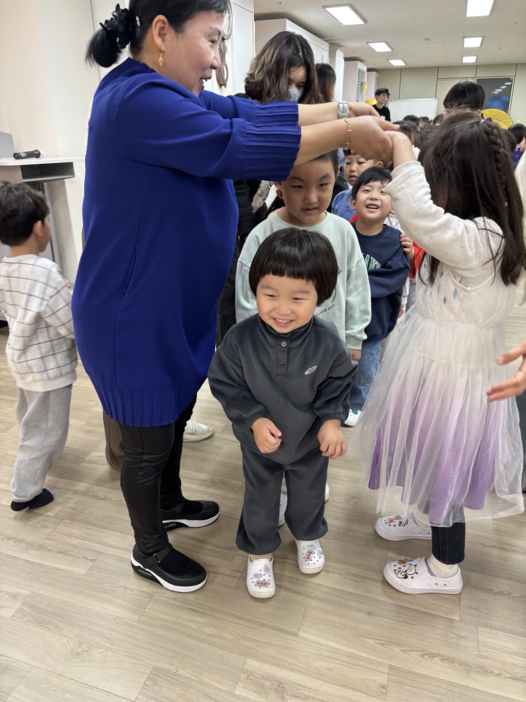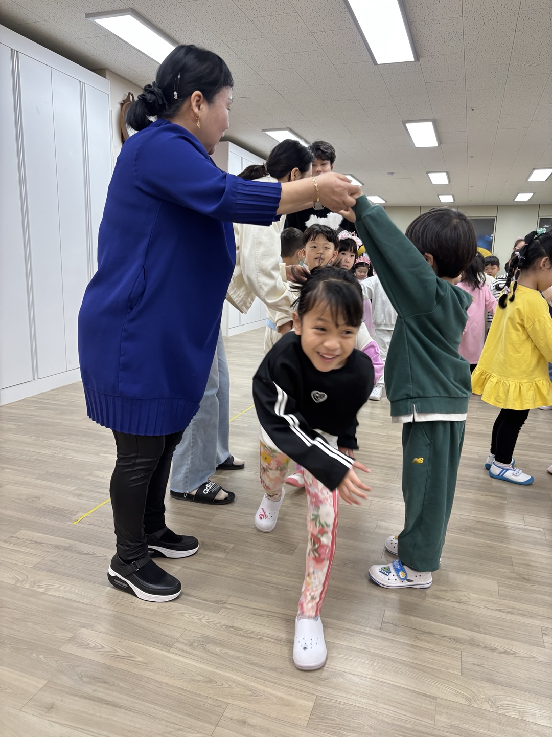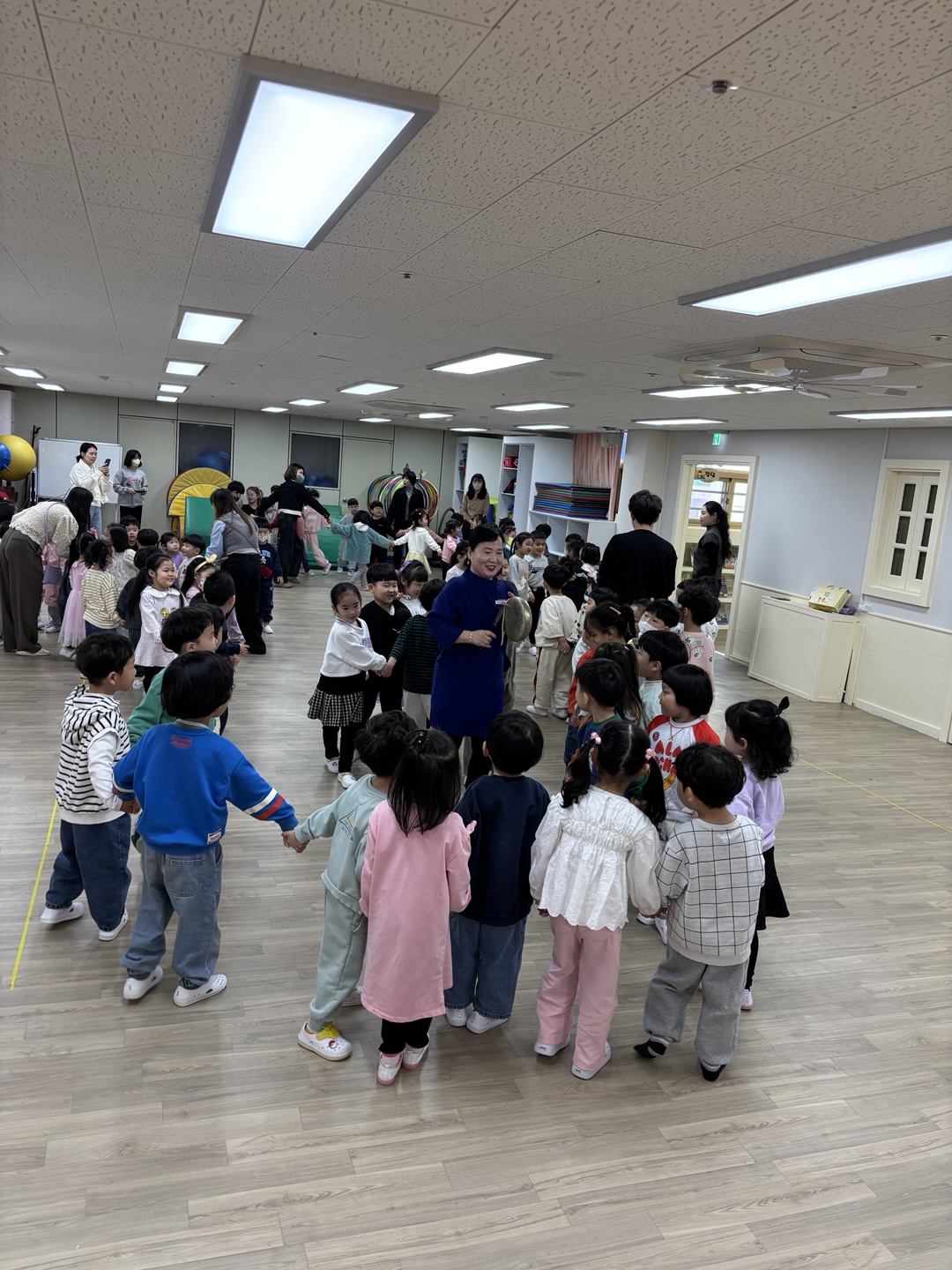 이 후 원감 선생님과 함께한 『전래동요 몸짓놀이』~~~^^ 전래동요에 맞추어 몸풀기를 체조를 한 후 ‘동동 동대문을 열어라~~’놀이를 해 보았습니다. 흥겨운 놀이에 유아들은 깔깔깔 웃으며 친구들과 재미나게 놀이를 즐겨보았습니다.