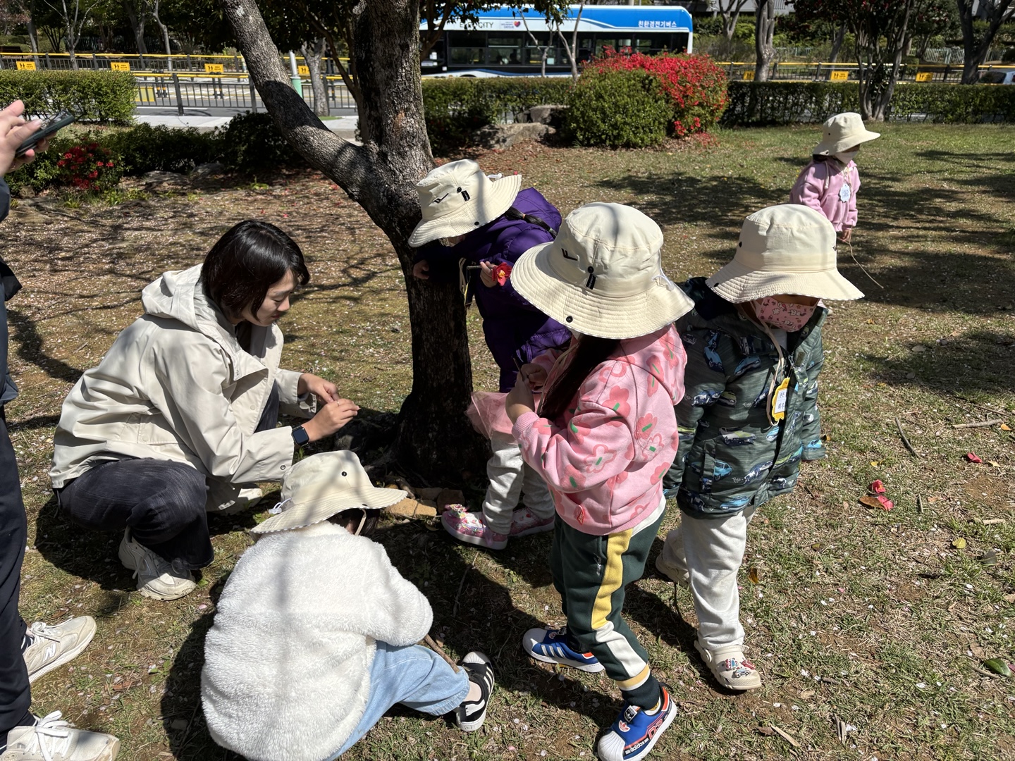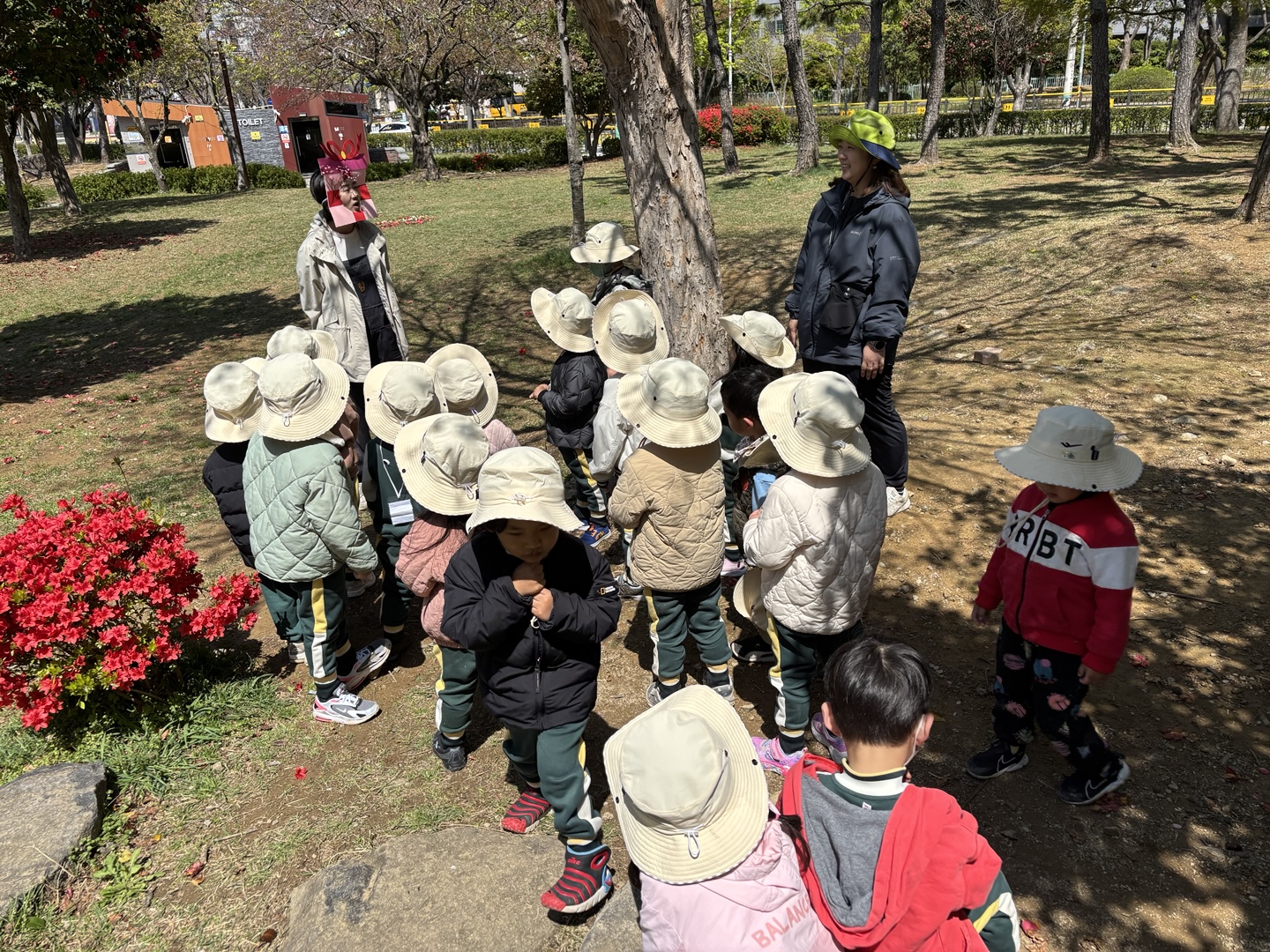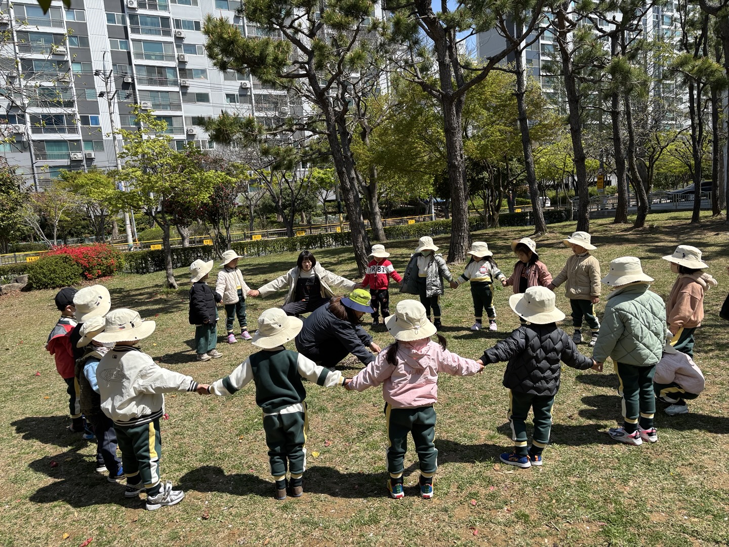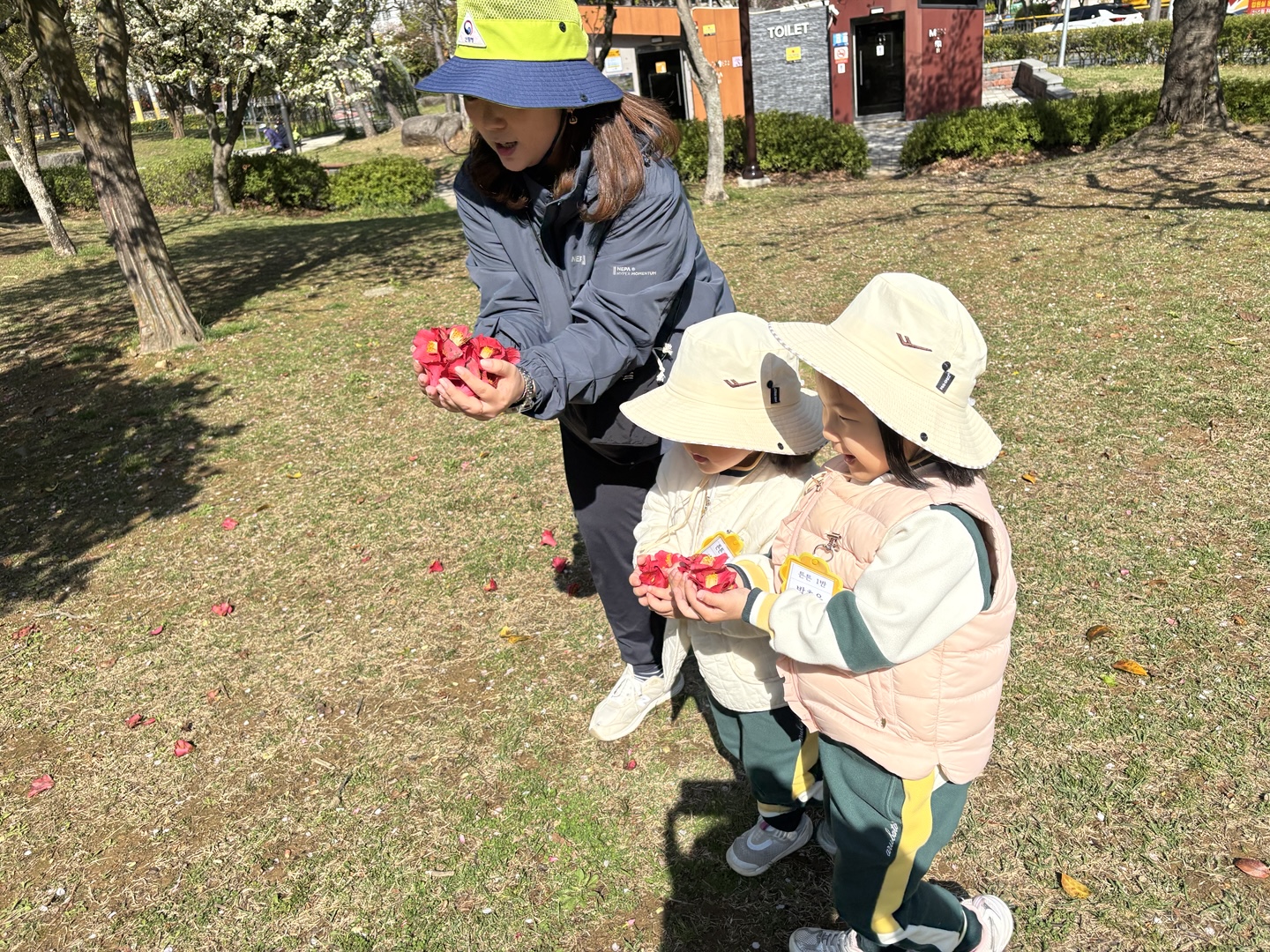4월 15일(튼튼1,2반, 희망1반)~16일(희망2반, 다정1,2반)에는 한아름 유치원 친구들이 근처 공원으로 숲체험을 다녀왔습니다. 숲체험 선생님과 함께 ‘꽃과 함께 놀자’란 주제로 봄꽃을 찾아 꽃나무 꾸미기, 꽃다발 만들기, 꽃귀신 잡기 등 다양한 놀이를 친구들과 신나게 즐기며 봄을 온 몸으로 느껴보았습니다.