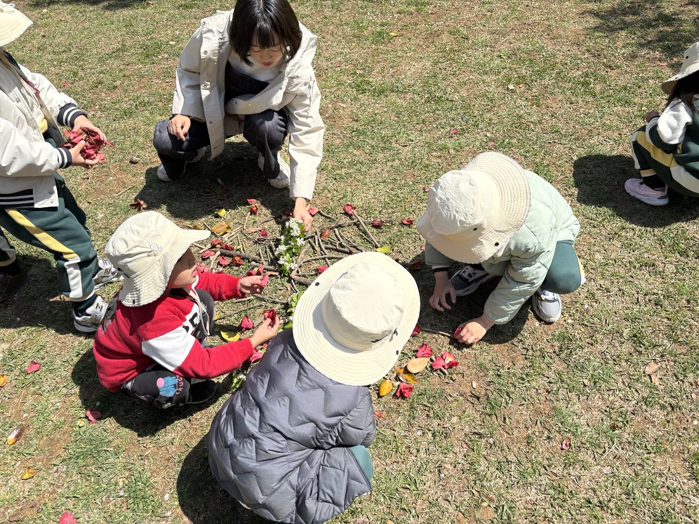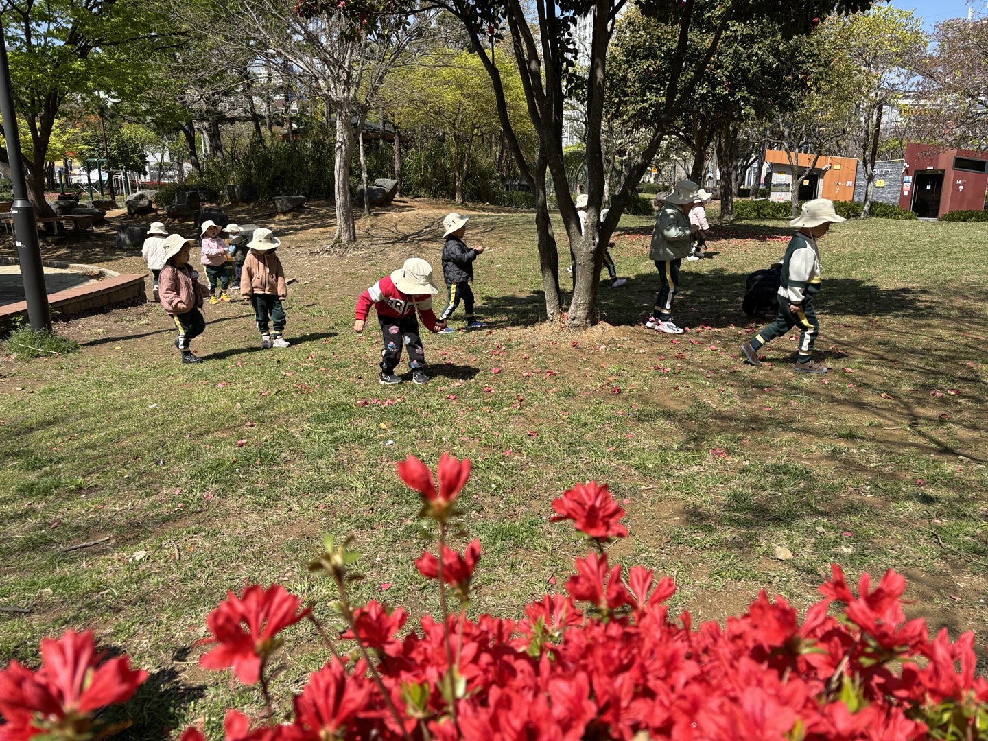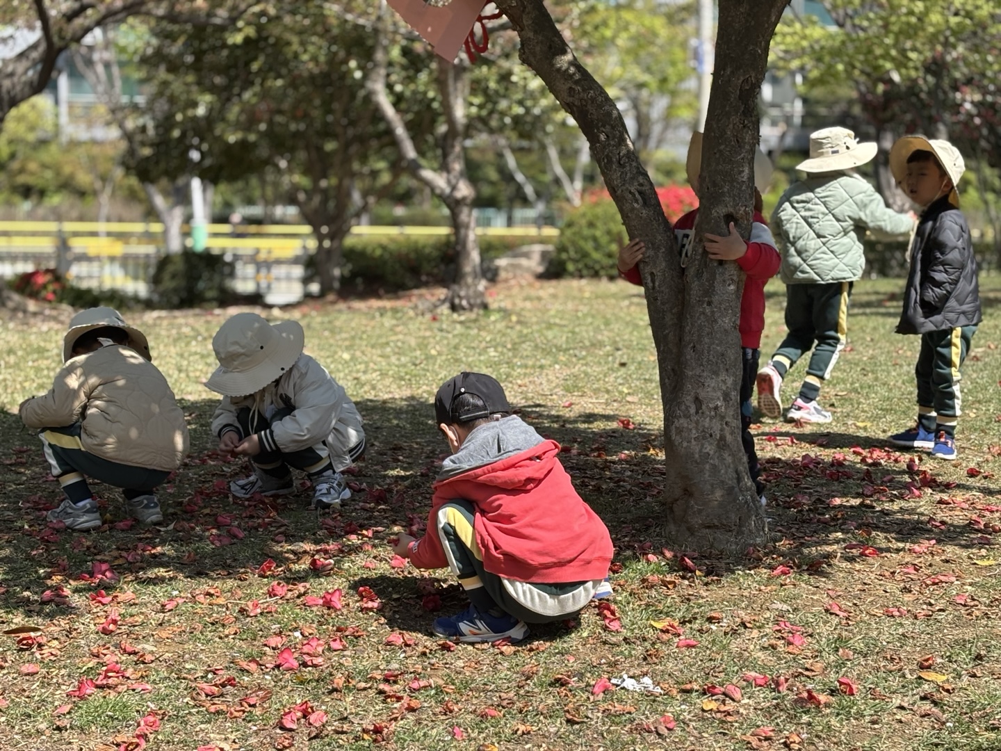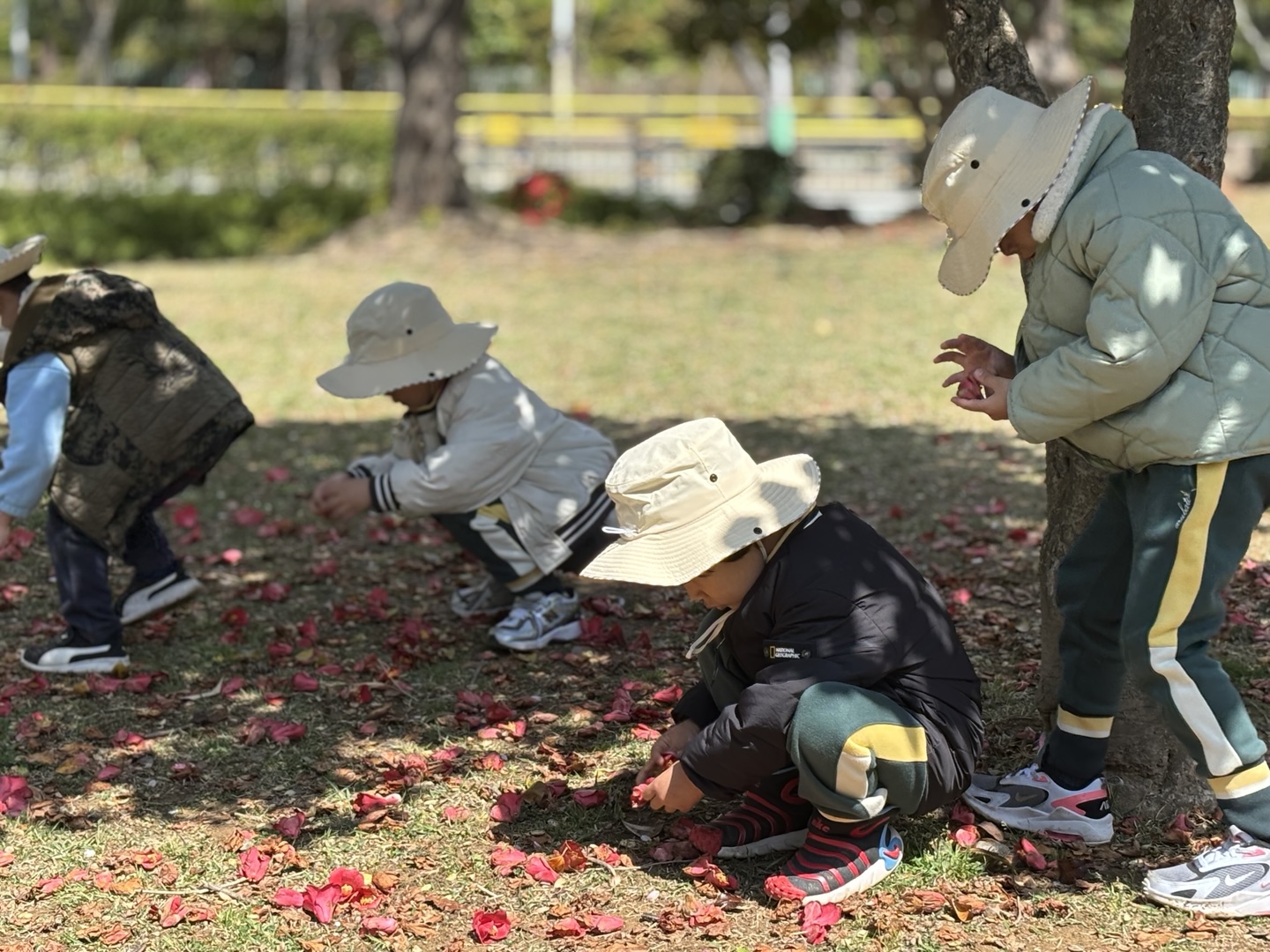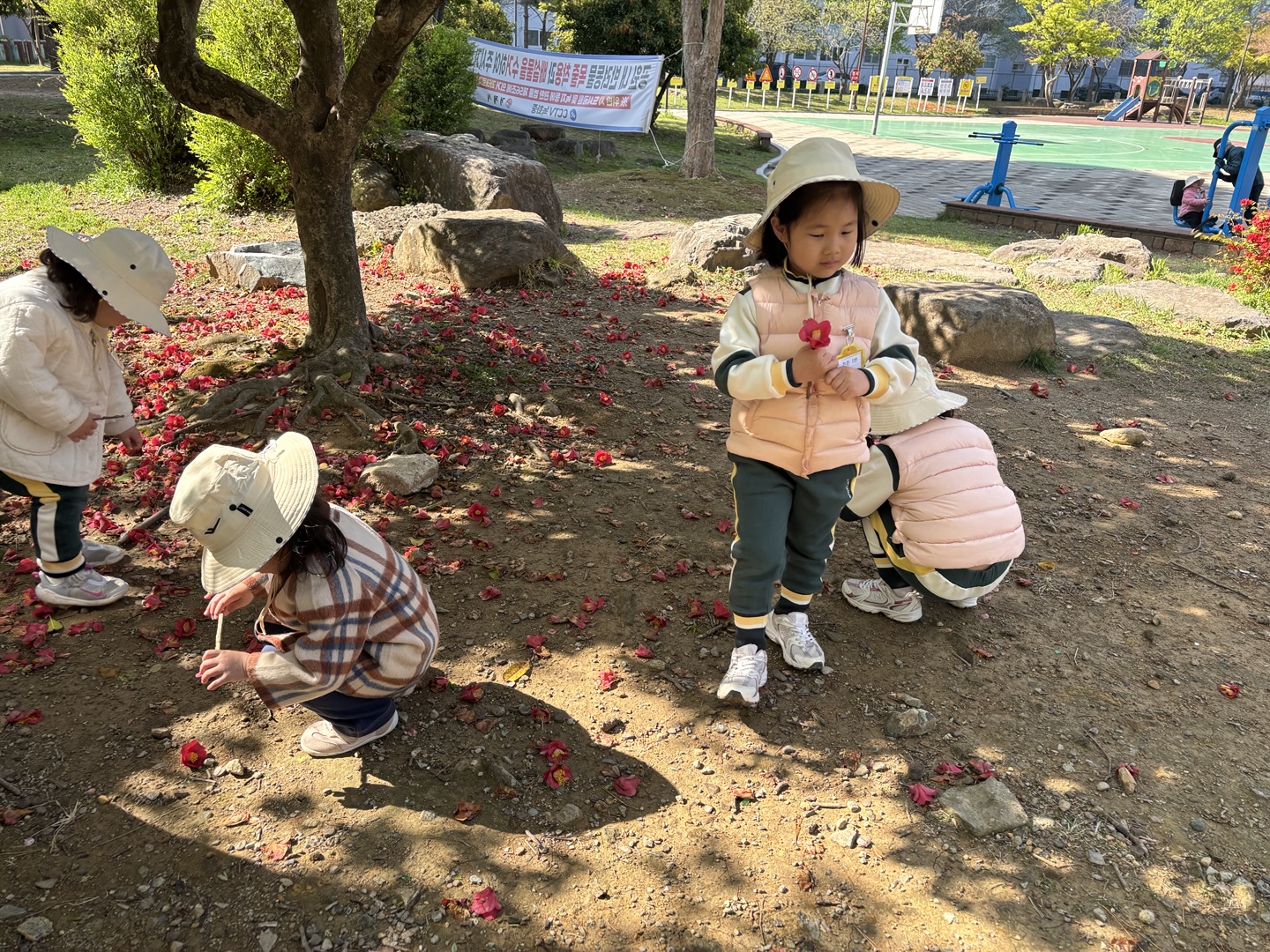 4월 15일(튼튼1,2반, 희망1반)~16일(희망2반, 다정1,2반)에는 한아름 유치원 친구들이 근처 공원으로 숲체험을 다녀왔습니다. 숲체험 선생님과 함께 ‘꽃과 함께 놀자’란 주제로 봄꽃을 찾아 꽃나무 꾸미기, 꽃다발 만들기, 꽃귀신 잡기 등 다양한 놀이를 친구들과 신나게 즐기며 봄을 온 몸으로 느껴보았습니다.