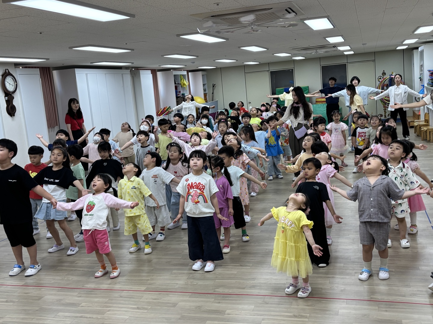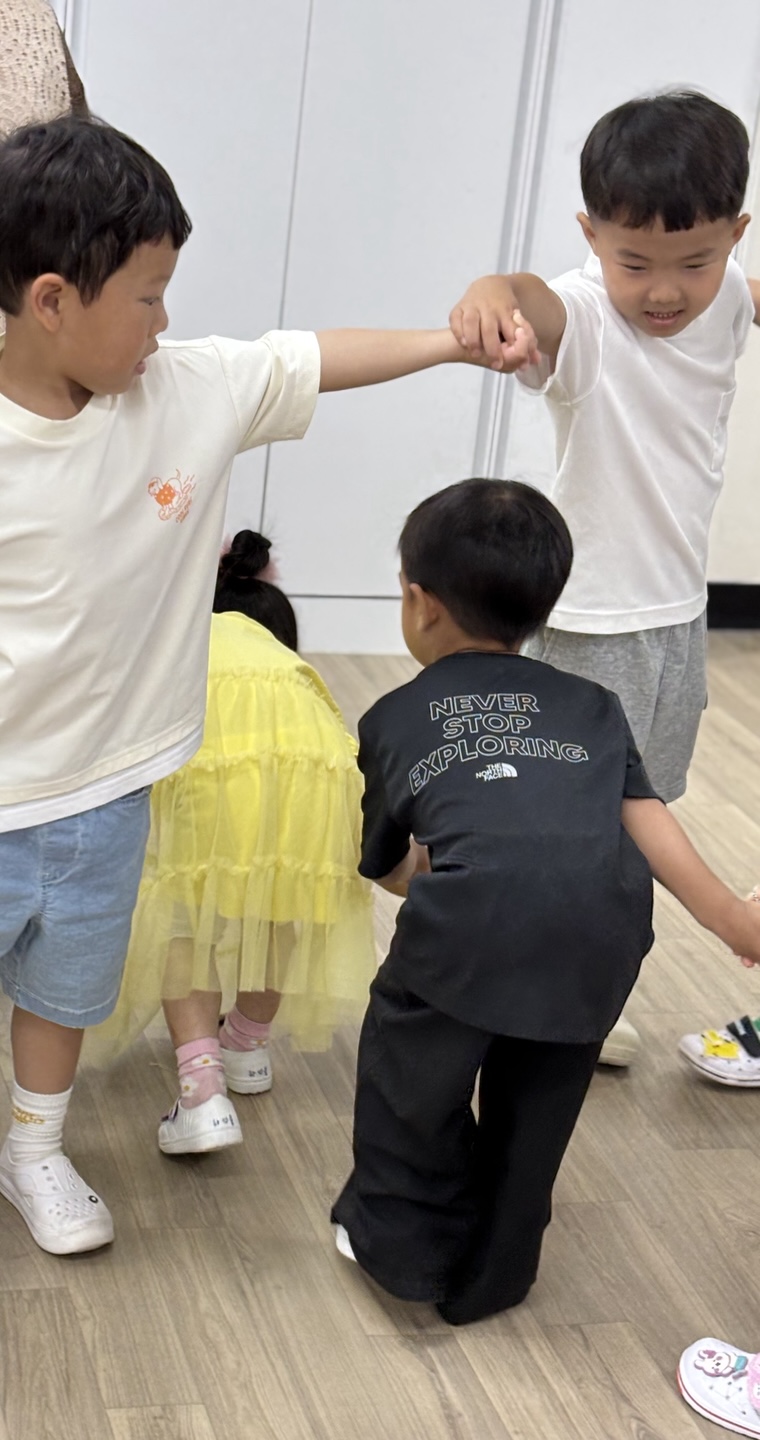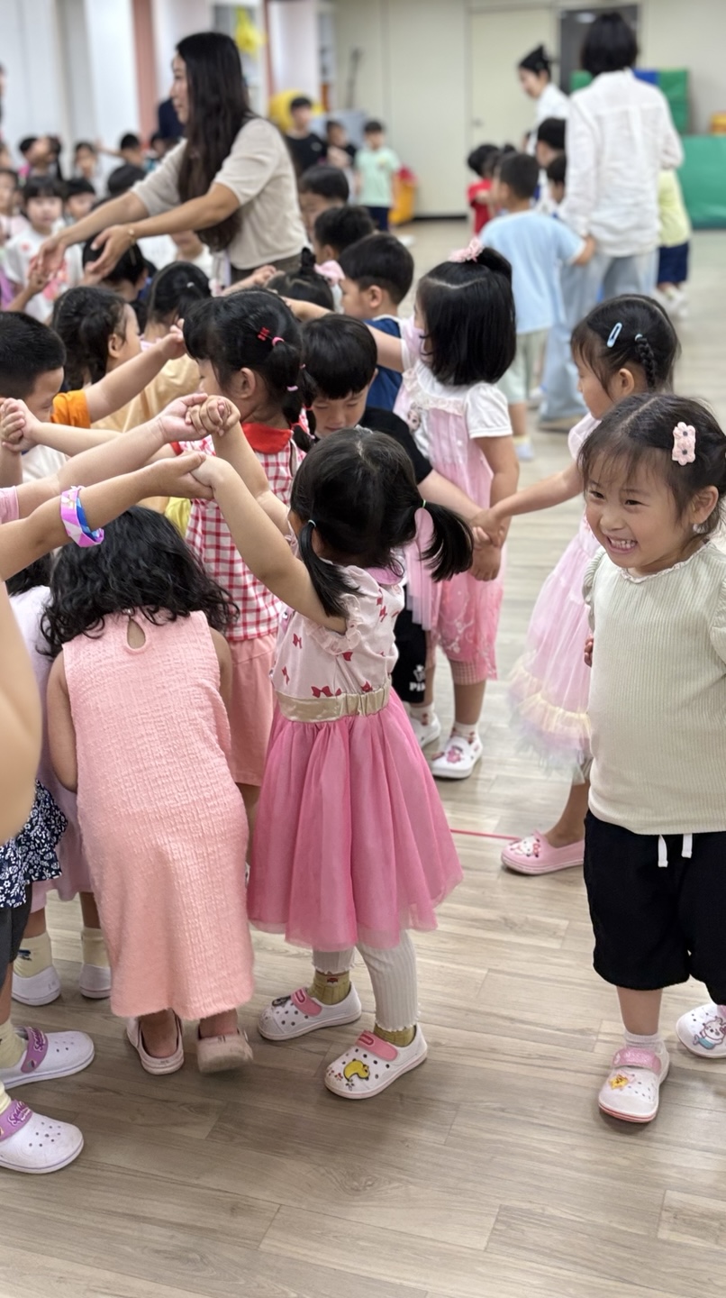 친구들과 손에 손을 잡고 빙글빙글 돌며 전래동요 및 풍물을 한바탕 신나고 흥겹게 즐겨보았습니다.