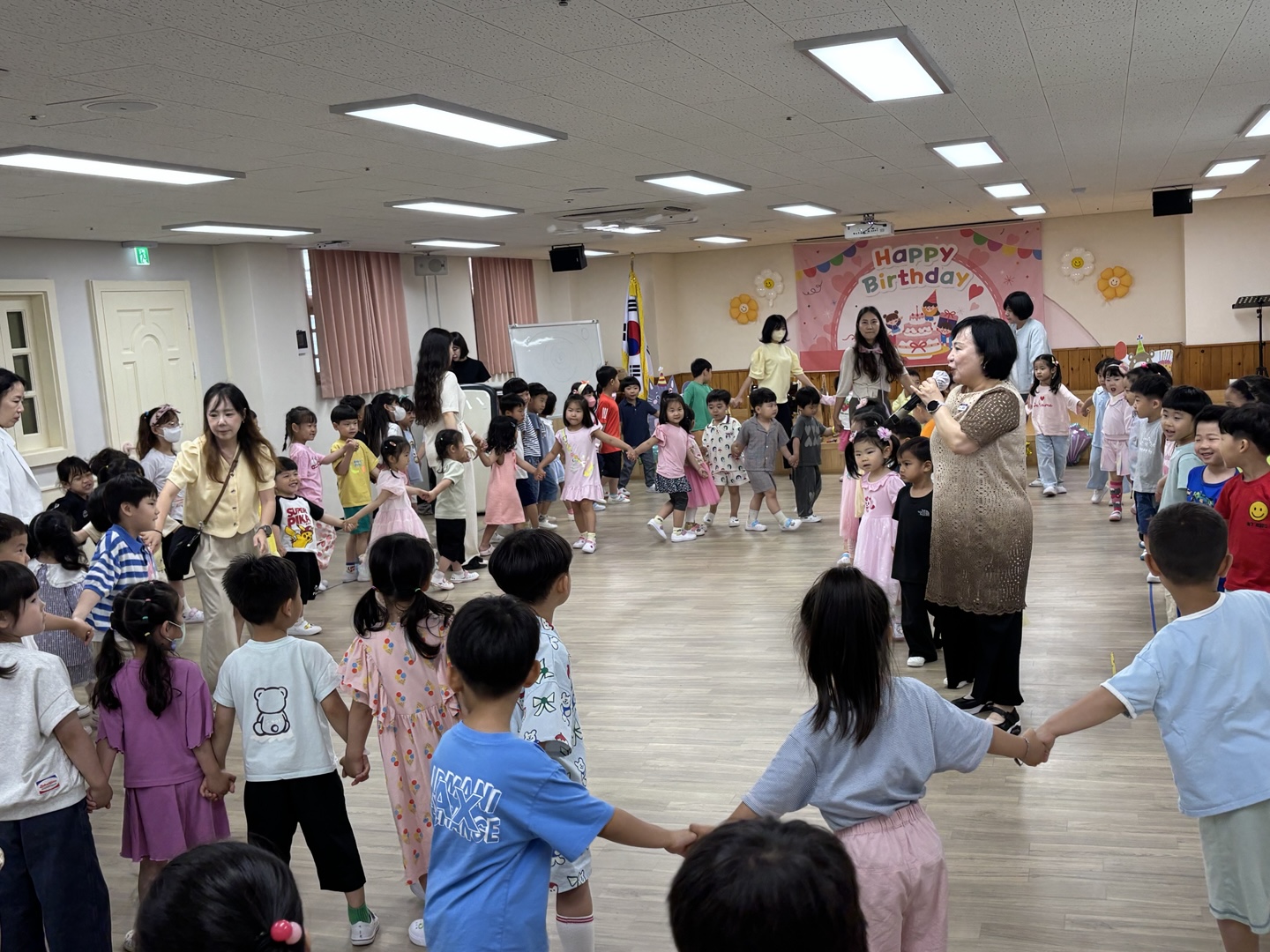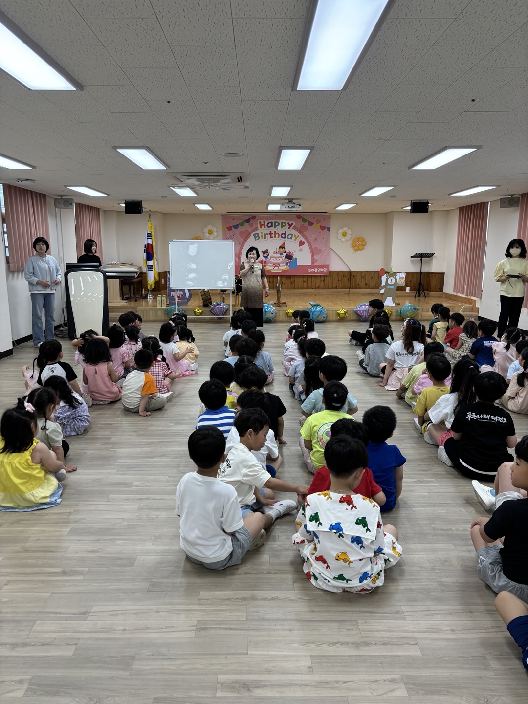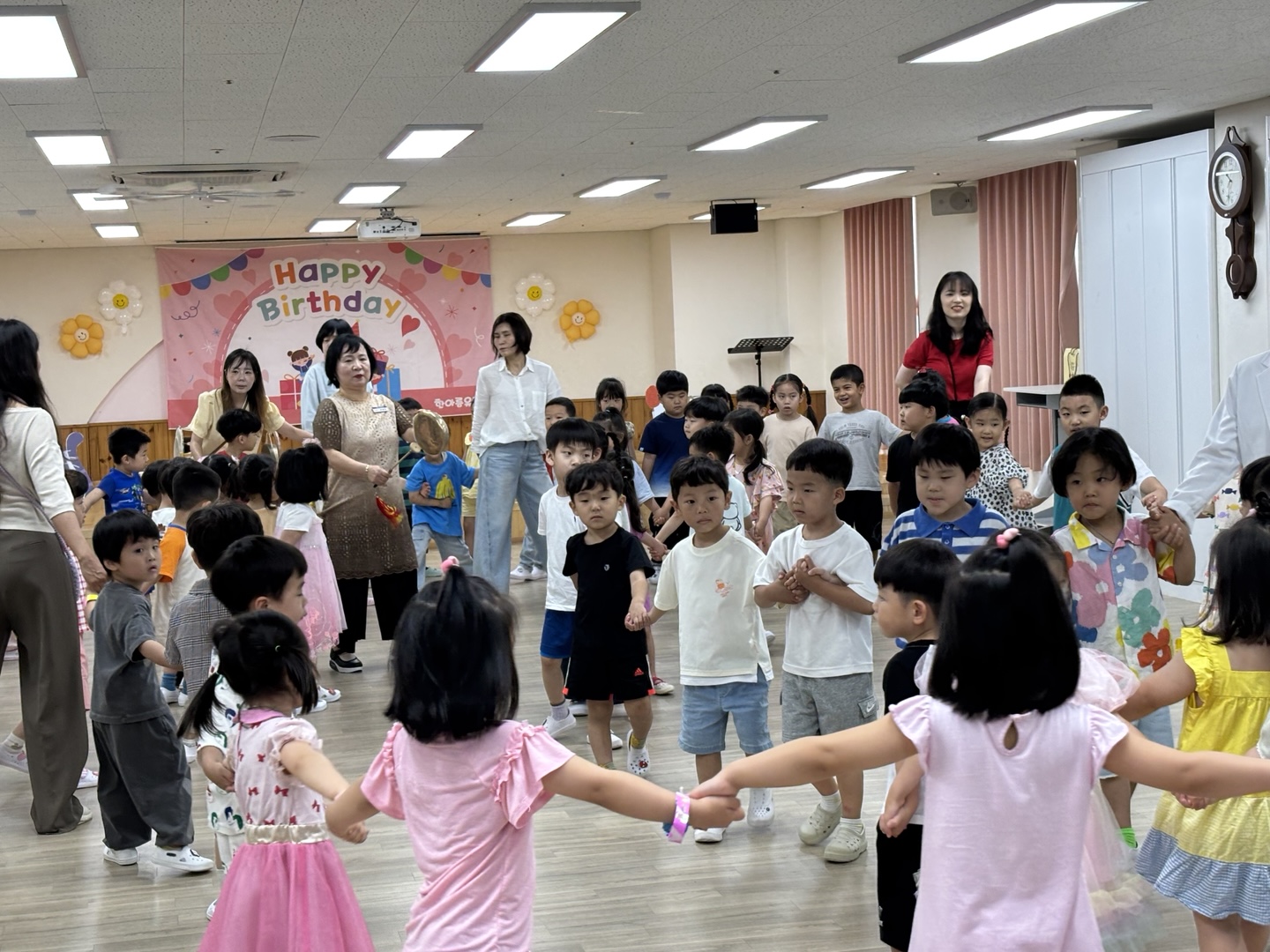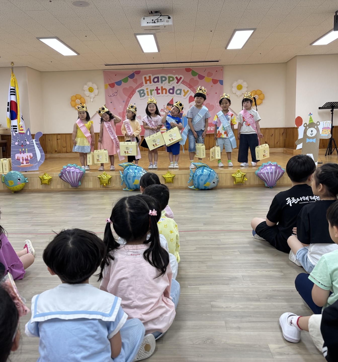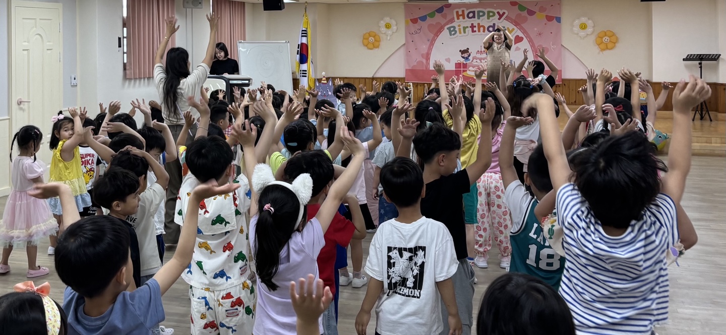 푸르른 나무와 햇살이 반짝이는 계절 6월에 친구들과 한자리에 모여서 인사도 나누고 6월에 태어난 여덟 명의 사랑스런 친구들에게 생일축하도 해 주었습니다.