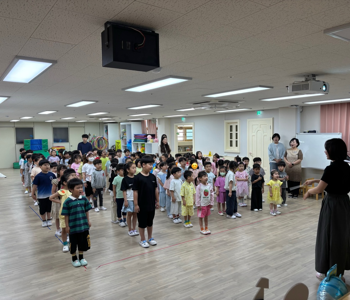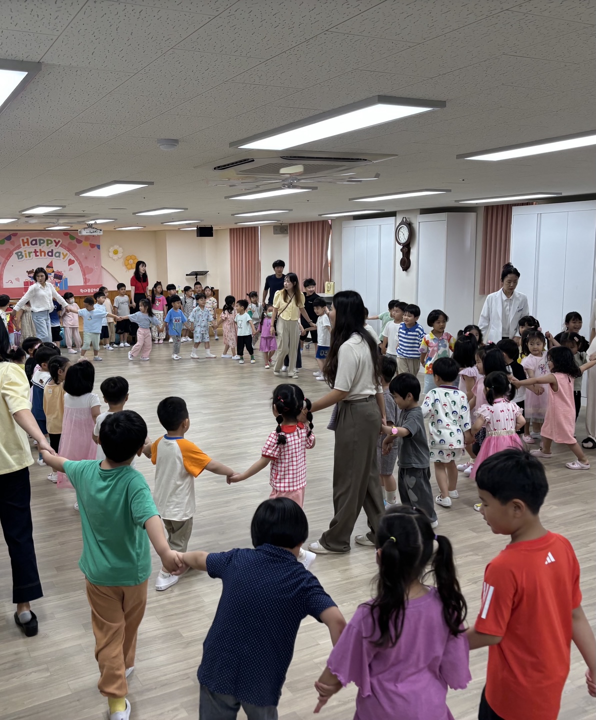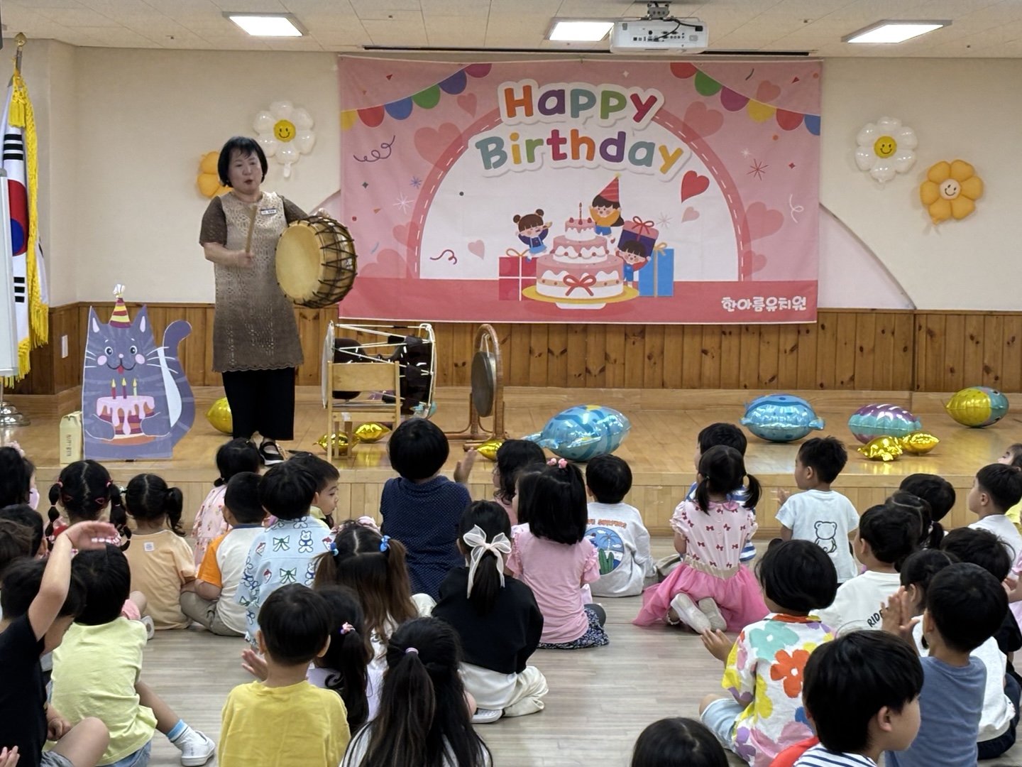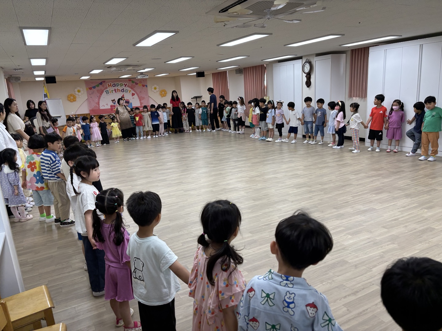 푸르른 나무와 햇살이 반짝이는 계절 6월에 친구들과 한자리에 모여서 인사도 나누고 6월에 태어난 여덟 명의 사랑스런 친구들에게 생일축하도 해 주었습니다.