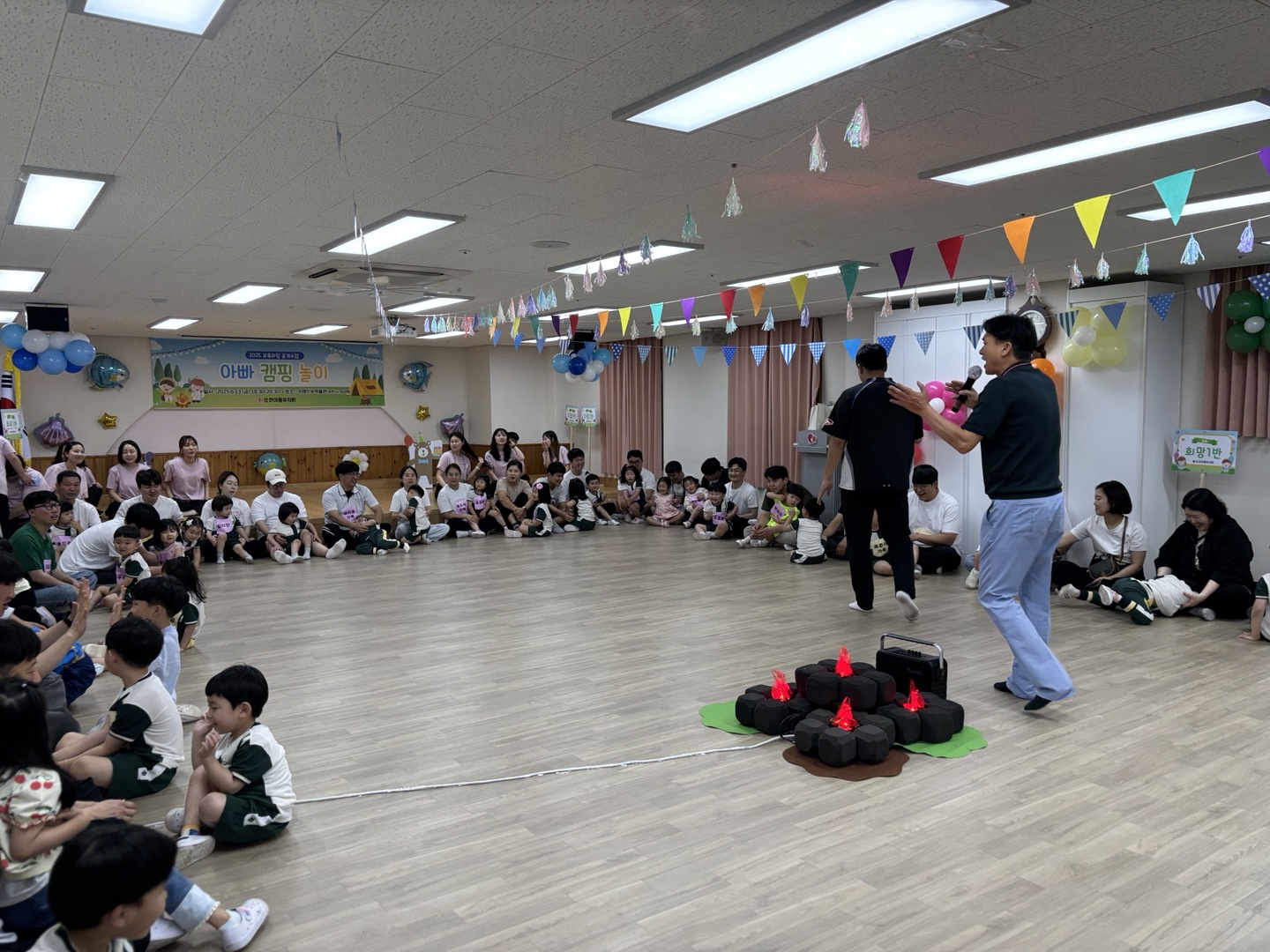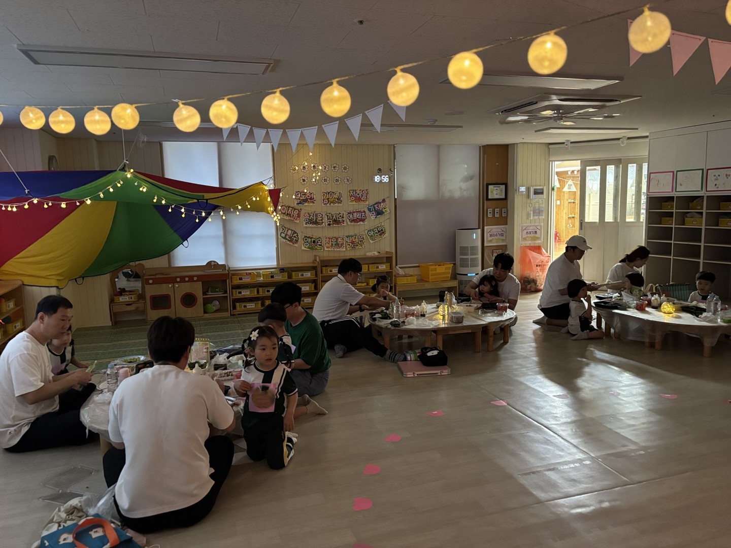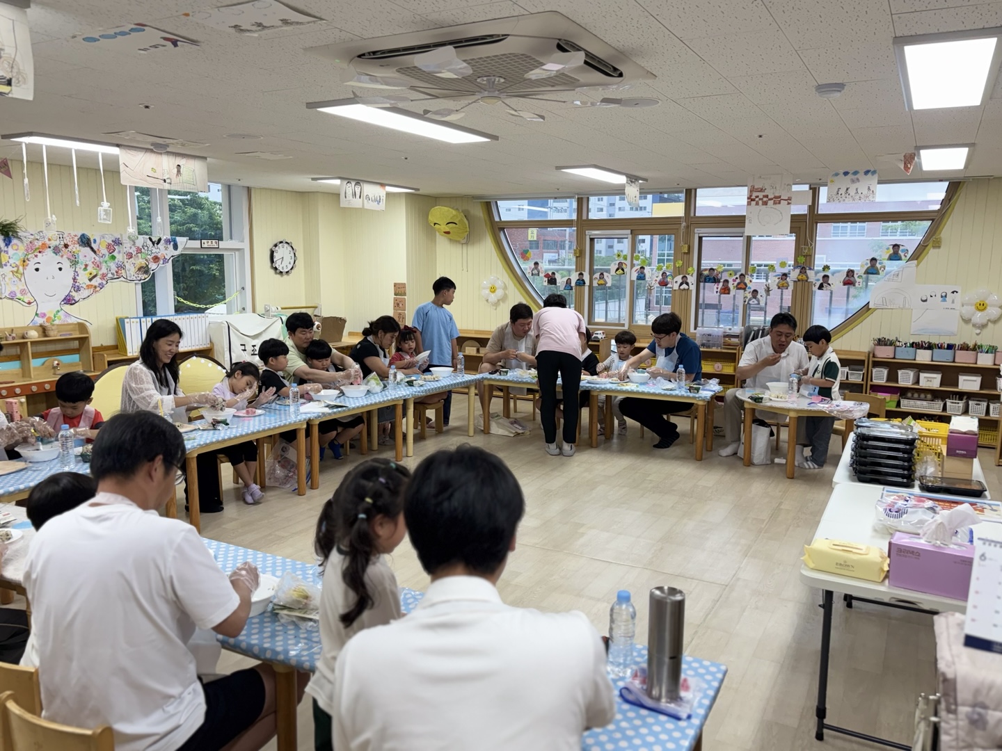 아빠와 함께 요리활동도 하며 만든 음식으로 도란도란 이야기 나누며 맛있게 식사도 하였으며 이후에는 강당에 모두 모여 감동편지 감상, 다양한 게임과 신체표현 등 레크레이션을 즐기며 아빠와의 특별한 추억을 쌓아보았습니다.