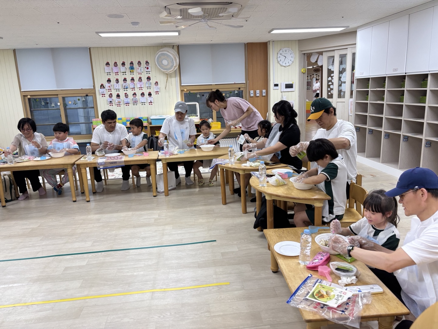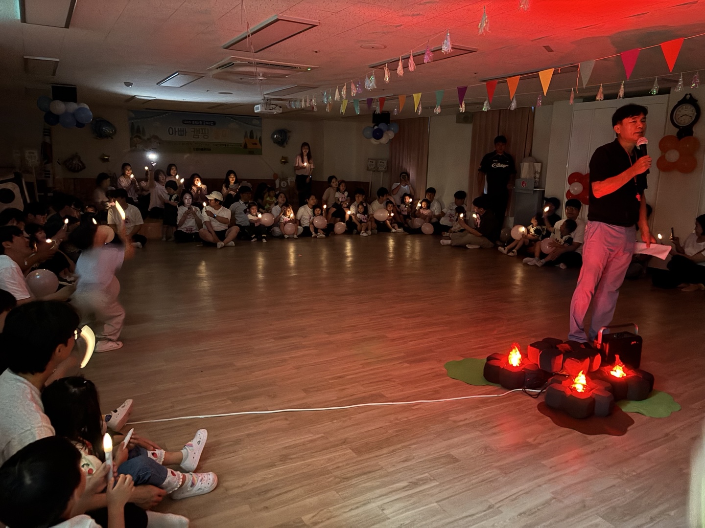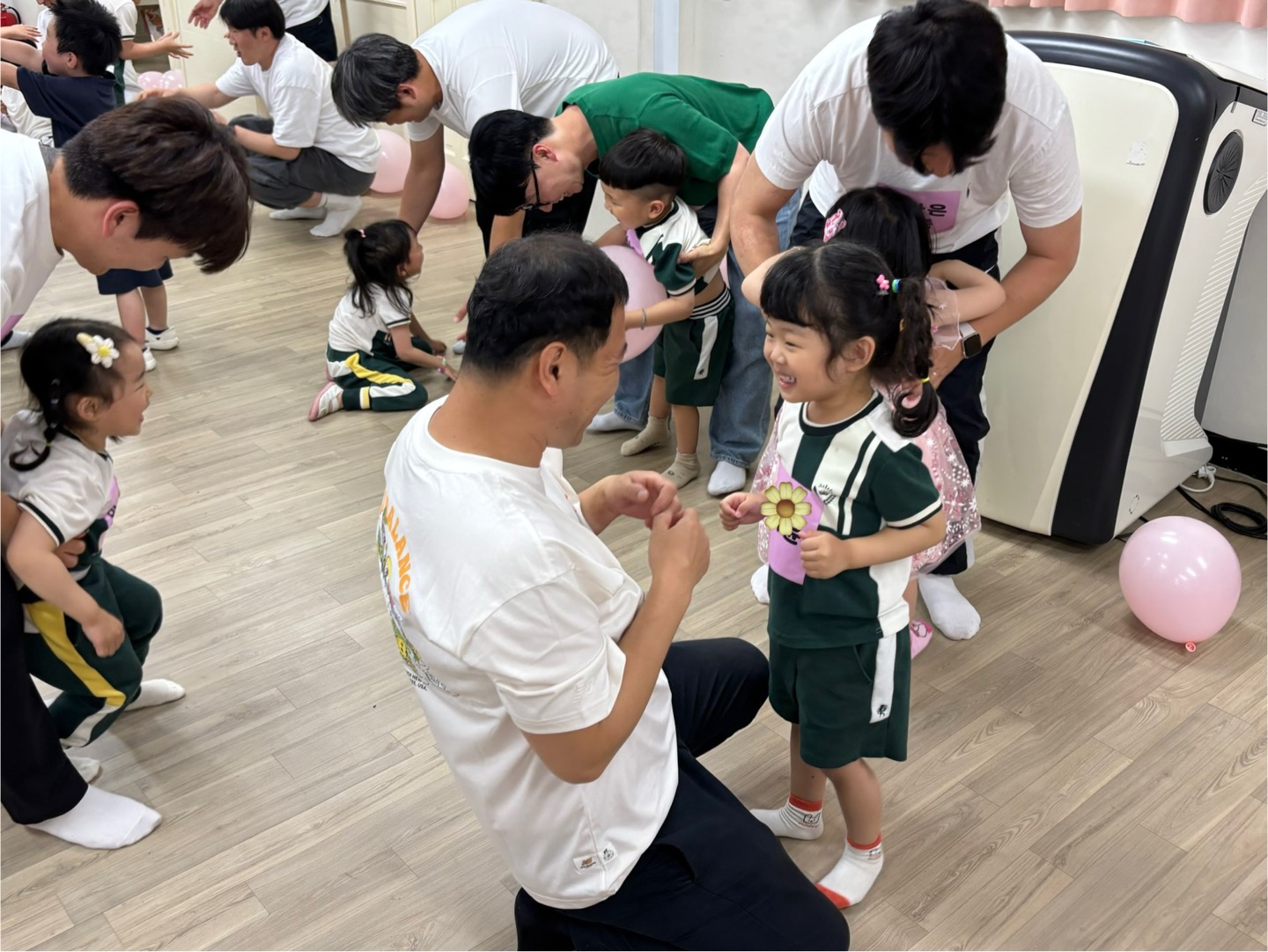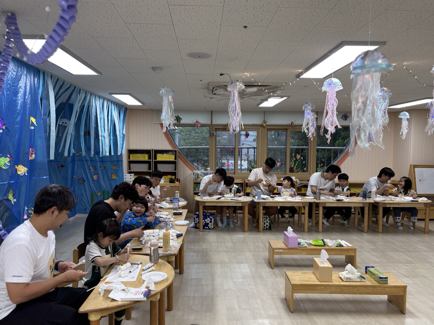 아빠와 함께 요리활동도 하며 만든 음식으로 도란도란 이야기 나누며 맛있게 식사도 하였으며 이후에는 강당에 모두 모여 감동편지 감상, 다양한 게임과 신체표현 등 레크레이션을 즐기며 아빠와의 특별한 추억을 쌓아보았습니다.