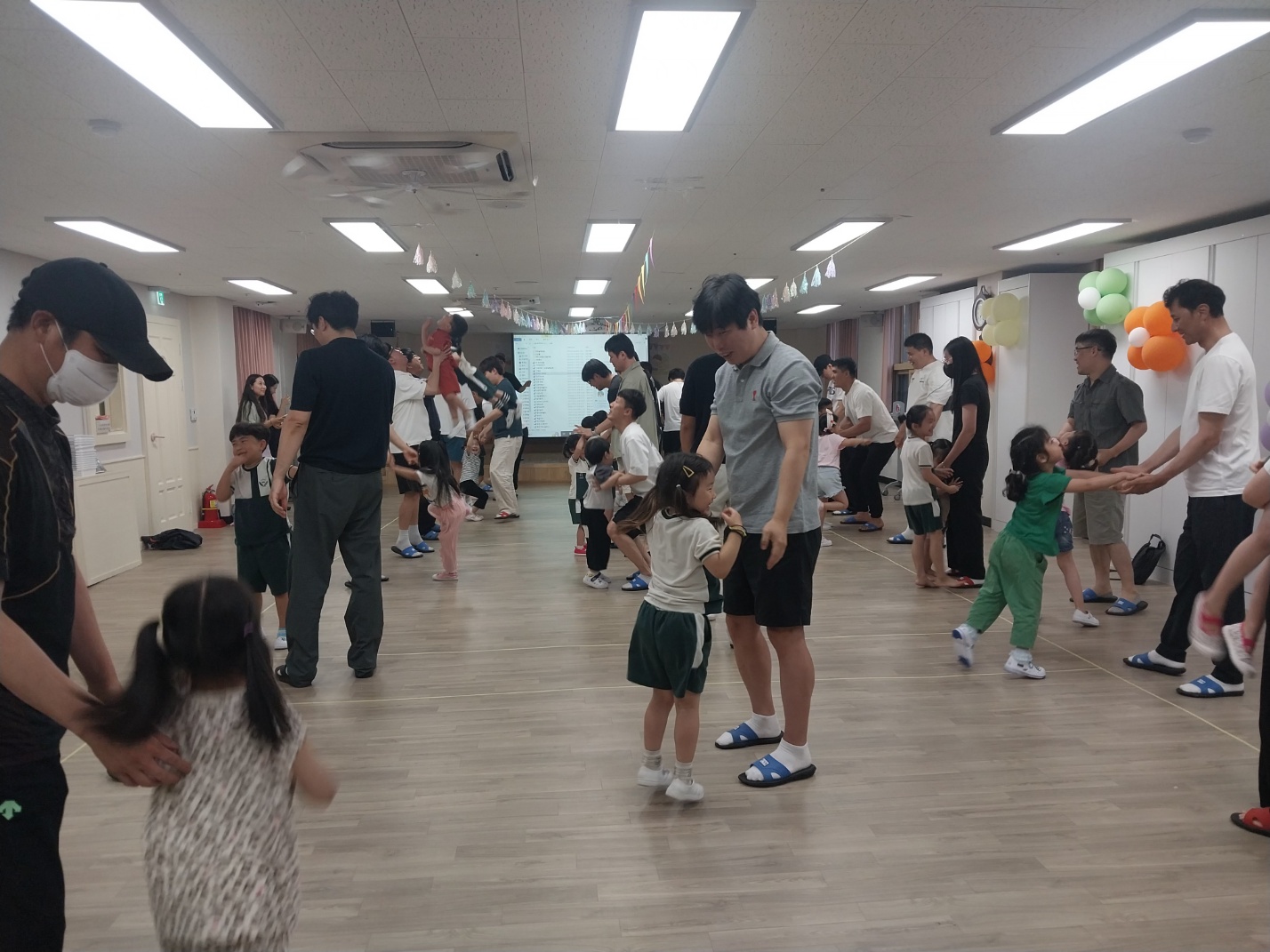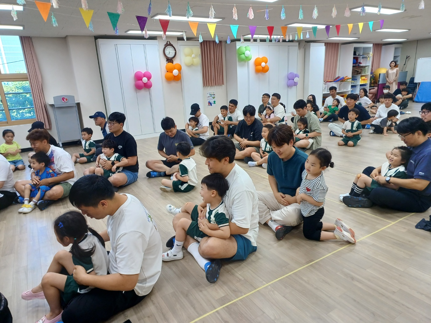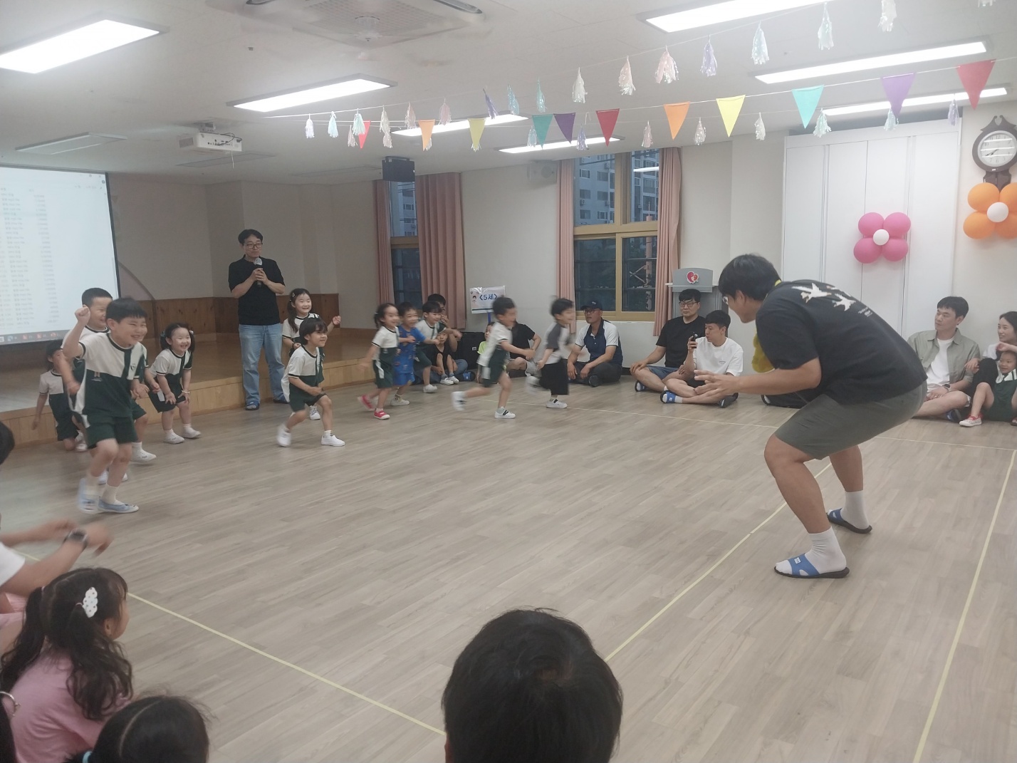 6월 30일(월)에는 김주원 강사(개구쟁이연구소 대표)님을 모시고 <2025. 한아름유치원 아버지 연수(부제: 아빠랑 아이랑 함께 놀아요)>를 진행했습니다. 약 30여명의 아버님들과 자녀들이 함께 강당에 모여 다양한 놀이를 체험했습니다. 비석치기, 입으로 불어 딱지넘기기, 점핑하여 가위바위보 놀이하기, 호랑이 피해 도망가기 등 간단하지만 흥미로운 놀이를 아빠와 함께 해보는 시간을 가졌습니다. 연수를 마치고 가정으로 돌아가는 아버님과 사랑스러운 자녀들의 입가에는 웃음이 가득한 추억이 만들어졌답니다.