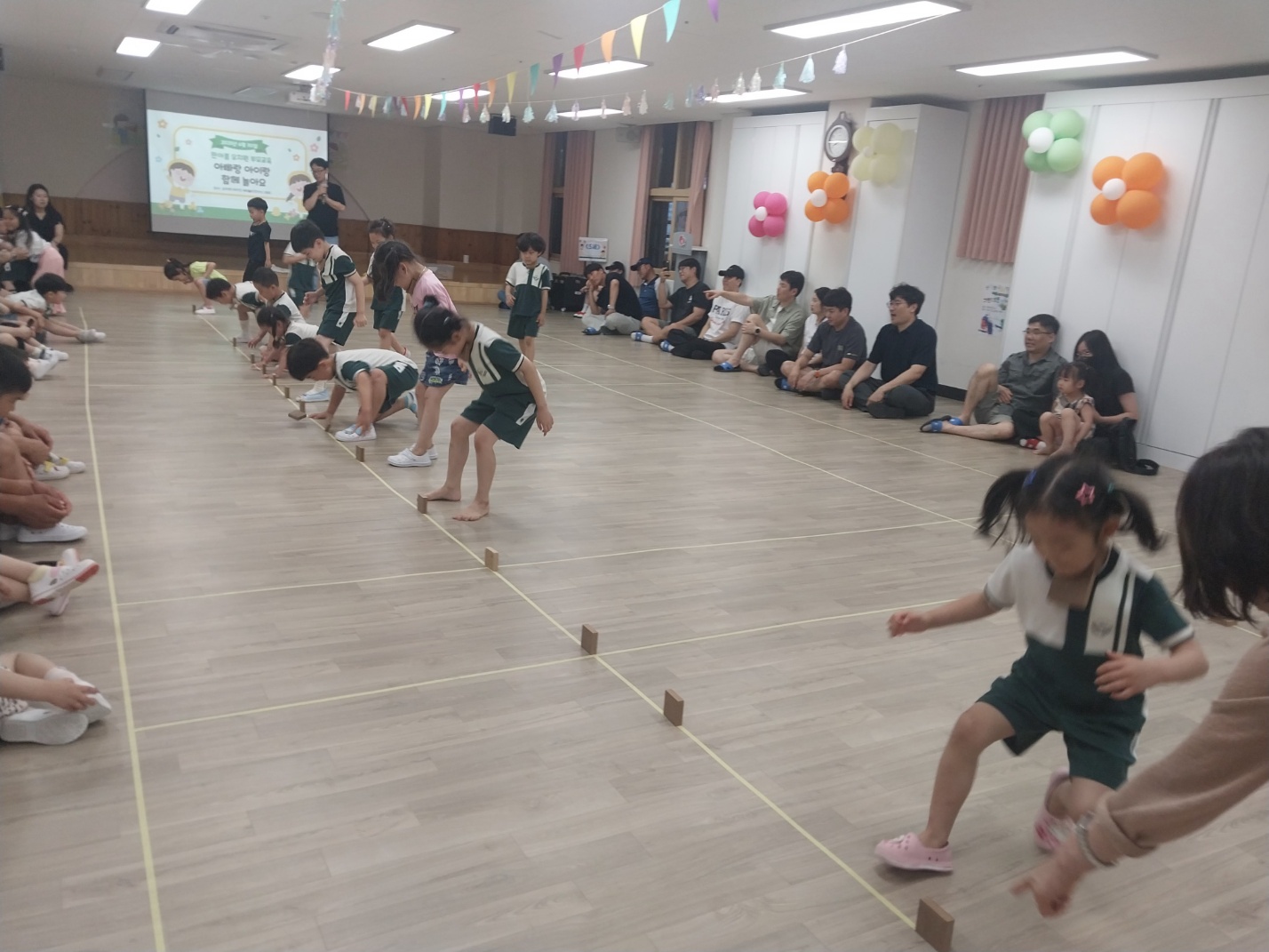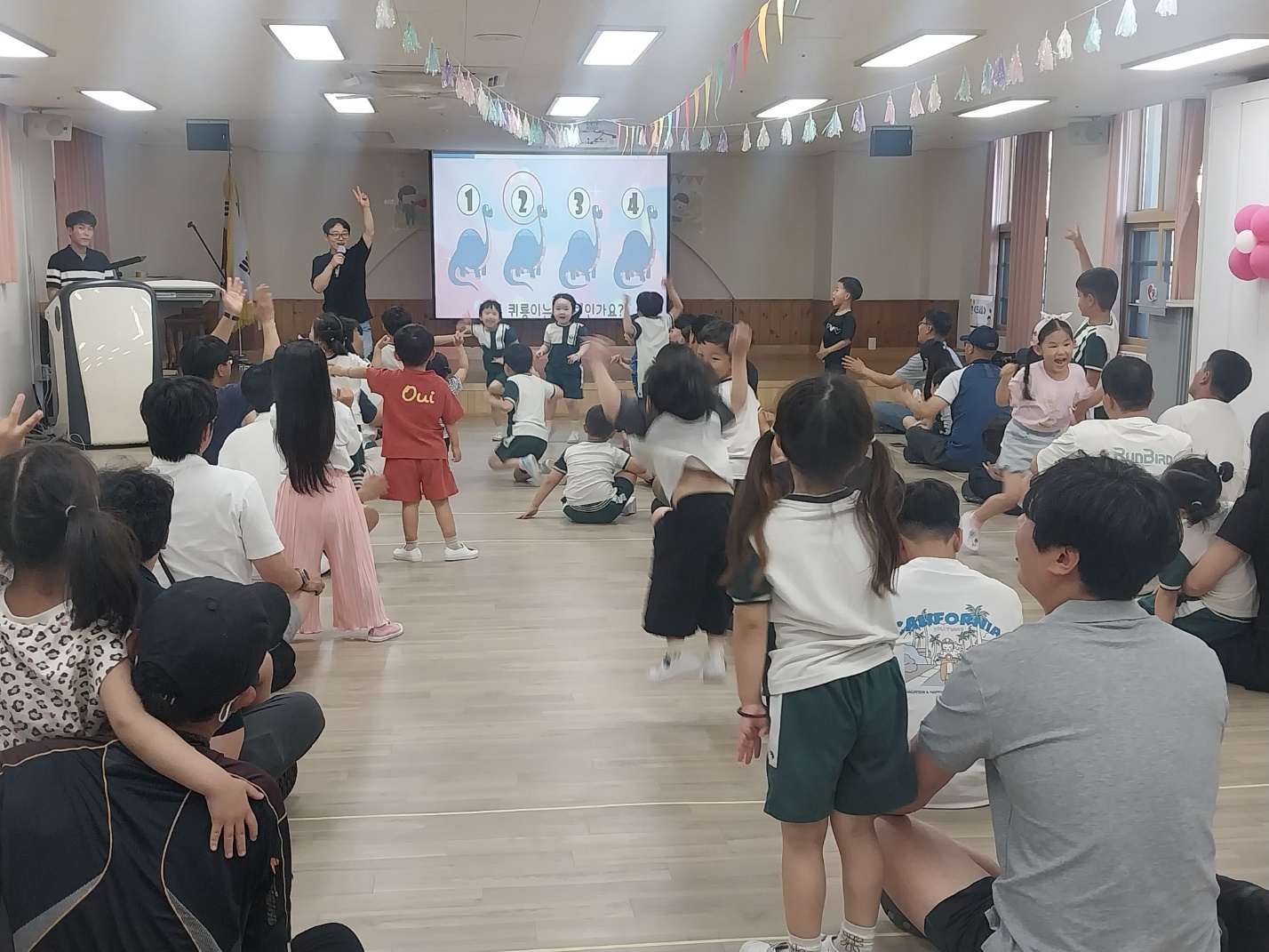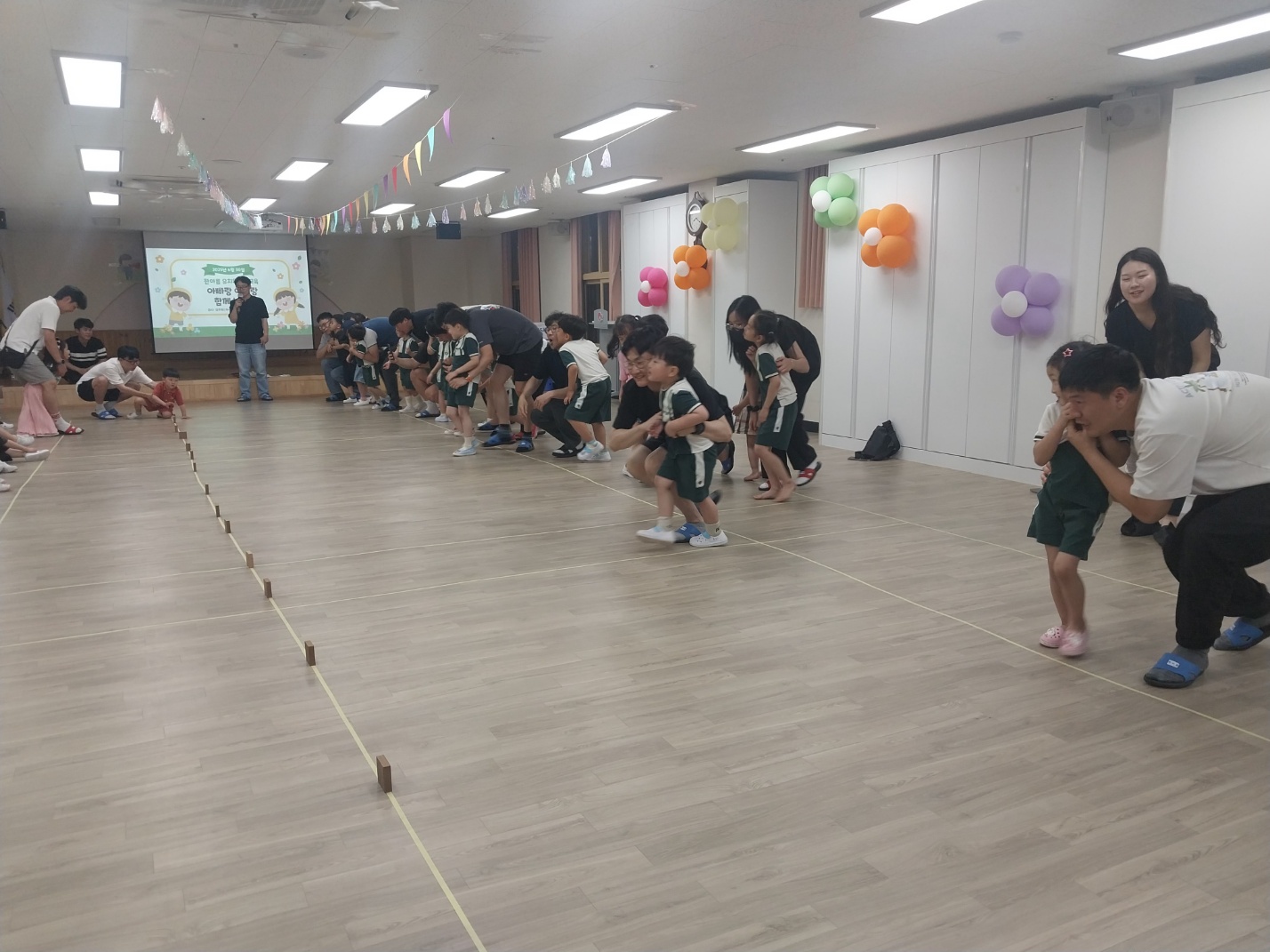 6월 30일(월)에는 김주원 강사(개구쟁이연구소 대표)님을 모시고 <2025. 한아름유치원 아버지 연수(부제: 아빠랑 아이랑 함께 놀아요)>를 진행했습니다. 약 30여명의 아버님들과 자녀들이 함께 강당에 모여 다양한 놀이를 체험했습니다. 비석치기, 입으로 불어 딱지넘기기, 점핑하여 가위바위보 놀이하기, 호랑이 피해 도망가기 등 간단하지만 흥미로운 놀이를 아빠와 함께 해보는 시간을 가졌습니다. 연수를 마치고 가정으로 돌아가는 아버님과 사랑스러운 자녀들의 입가에는 웃음이 가득한 추억이 만들어졌답니다.