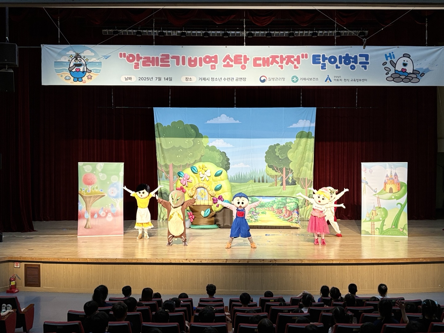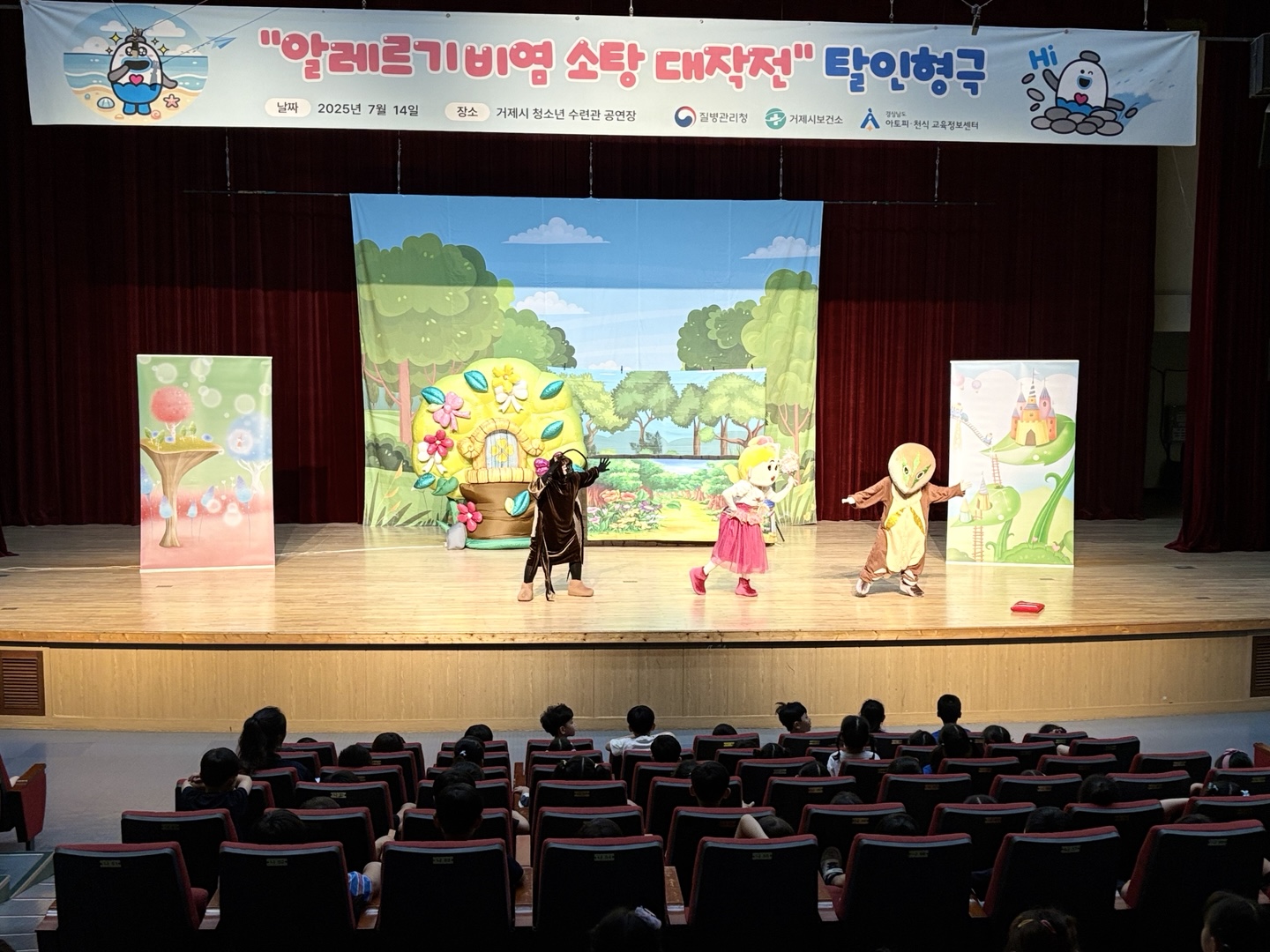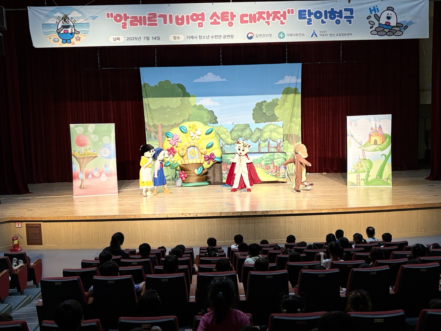 7월 14일(월)에는 3세(튼튼1반, 2반), 4세(희망1반, 2반) 유아를 대상으로 ‘알레르기 비염 소탕 대작전’이라는 탈인형극 공연 관람을 가졌습니다. 알레르기란 무엇이며 알레르기의 원인과 예방법에 대한 내용을 탈인형극을 통해 재미있게 관람하며 알 수 있었습니다.