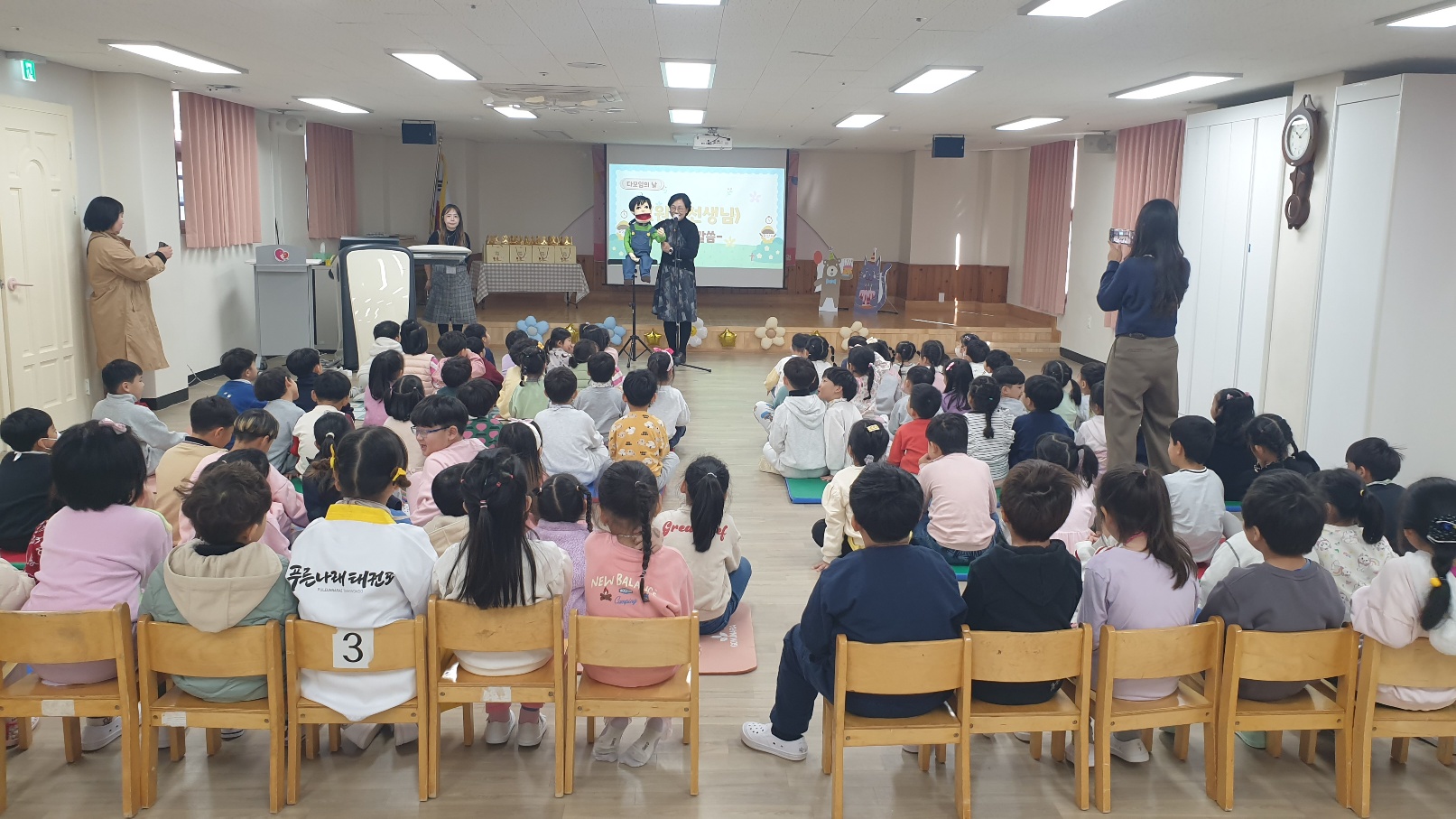 단풍이 곱게 물들어가는 11월입니다한아름 친구들이 한자리에 모여 원장선생님께서 들려주시는 덕이의 기침예절 건강이야기를 듣고 손씻기와 건강한 생활습관에 대해서 알아보았습니다.11월에 태어난 생일친구들을 축하해주며즐거운 다모임시간을 가졌습니다^^